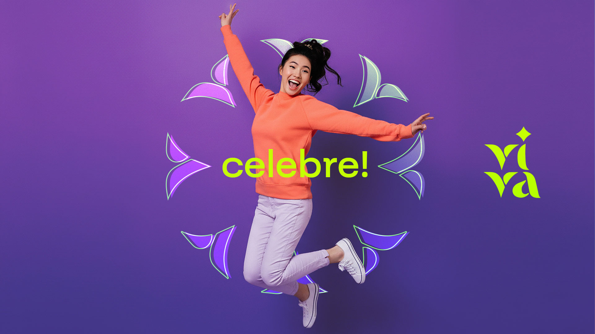 A V.4 para a marca VIVA nasce da celebração como gesto, emoção e presença. Seu desenho sugere braços erguidos — um movimento universal de alegria, acolhimento e exaltação — enquanto evoca de forma sutil a sensação de WOW, traduzindo o encanto, a surpresa e a energia que transformam uma festa em experiência.