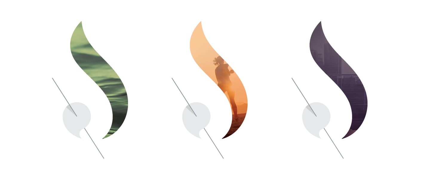 A criação da marca central baseia-se em três elementos essenciais para o processo de coaching desenvolvido pelo escritório da S-Rocha®, representados por diferentes imagens e significados.